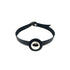 Leather choker with metal element.