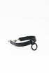 Изцяло ръчно изработен в ателието на дизайнера Зора Романска в София, България, този продукт е направен от 100% висококачествена италианска кожа в комбинация от метални елементи с цвят на черен никел. Поставена е закопчалка тип папагал, която има възможност да бъде закачена на различни места за метална верижка, спрямо размера на глезена.