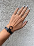 Изцяло ръчно изработено в ателието на дизайнера Зора Романска в София, България, този аксесоар е направен от 100% висококачествена италианска кожа и черна халка мат. Цвят – черен.